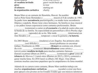 Bruno Mars Biography Worksheet Preterite Preterito