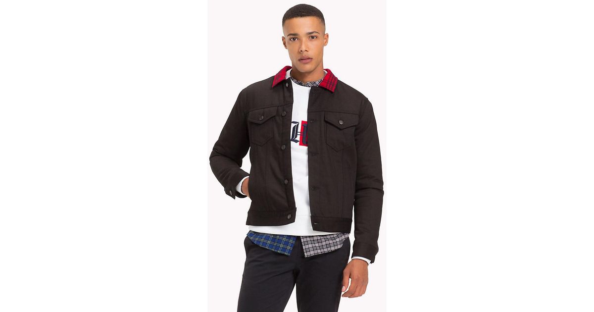 Tommy Hilfiger Black Lewis Hamilton Check Collar Denim Jacket For Men